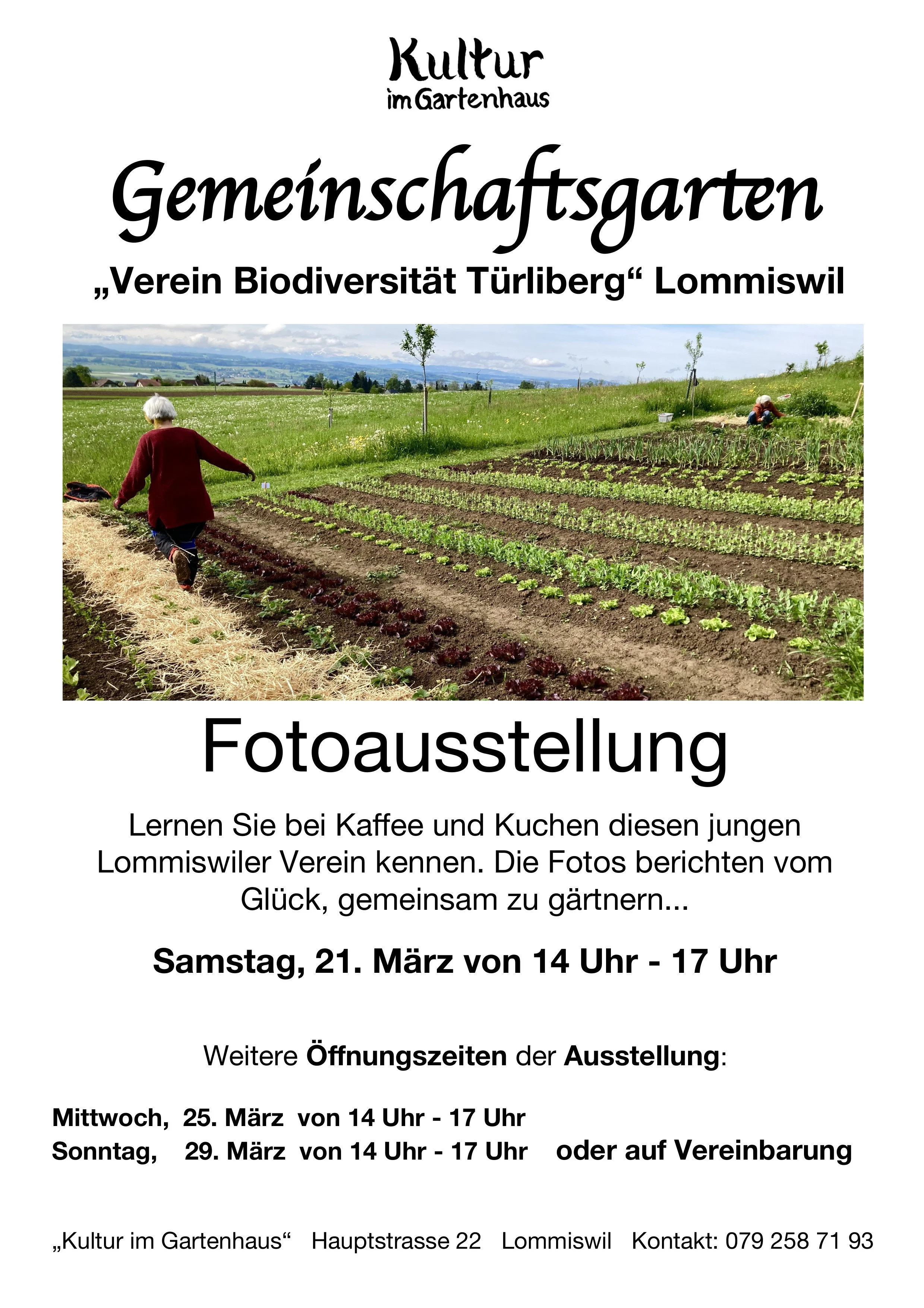 Soeben erwacht “Kultur im Gartenhaus” aus dem Winterschlaf. Und wie könnte es schöner sein: wir begrüssen den Frühling mit der Fotoausstellung “Gemeinschaftsgarten” des “Verein für Biodiversität Türliberg" aus Lommiswil.